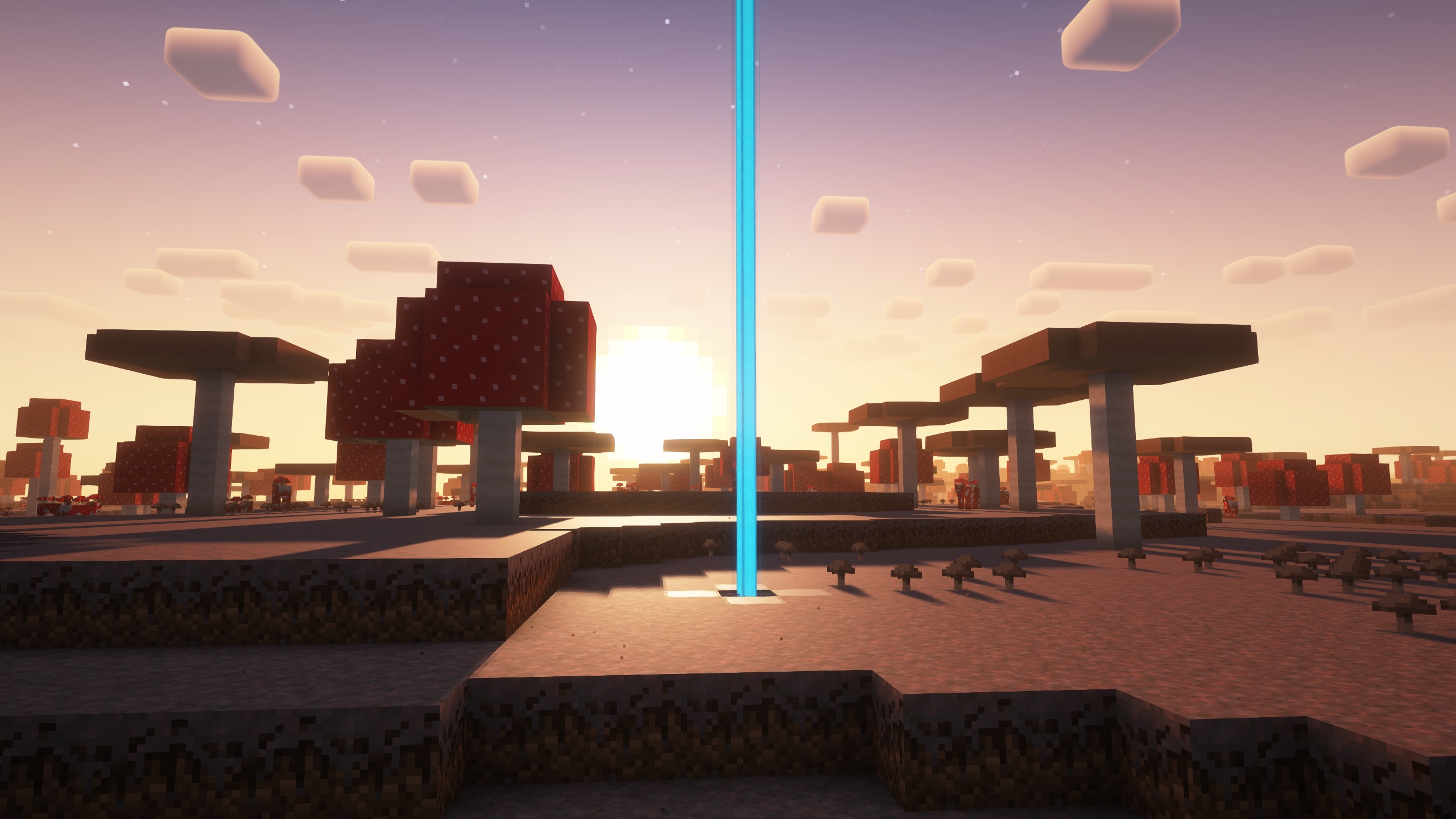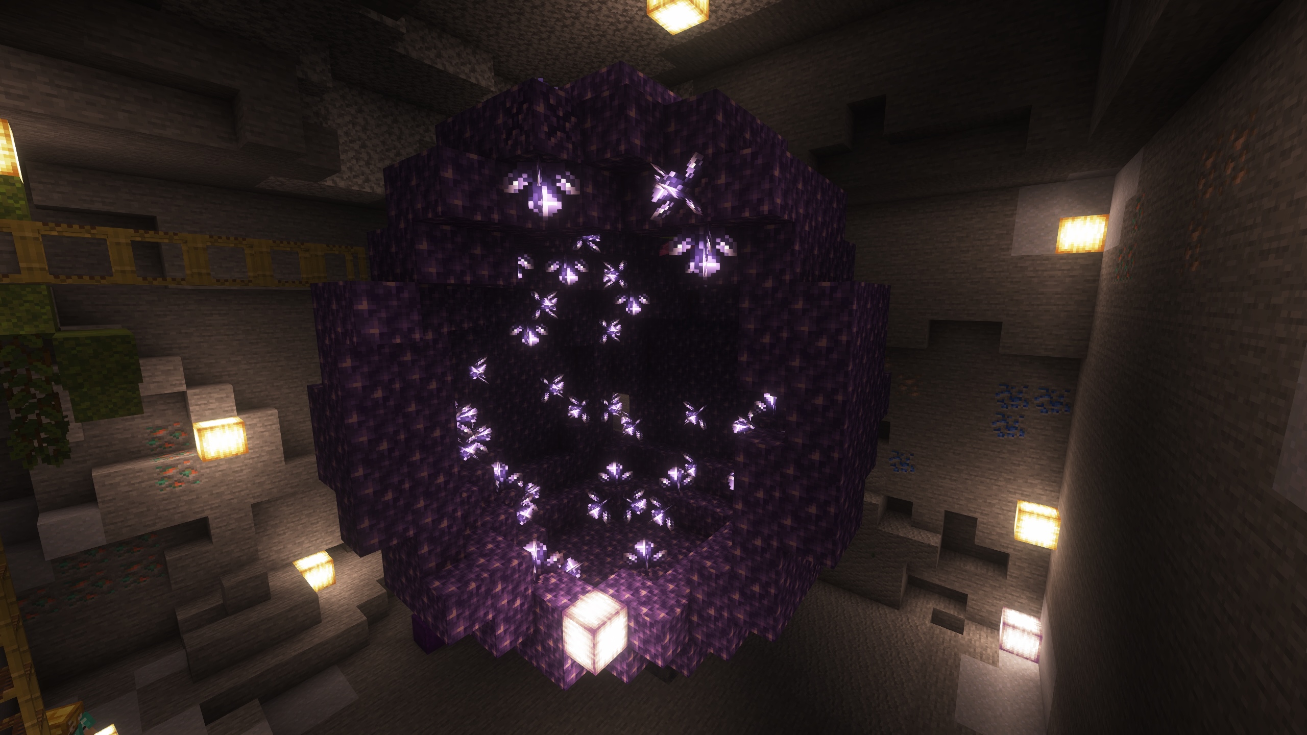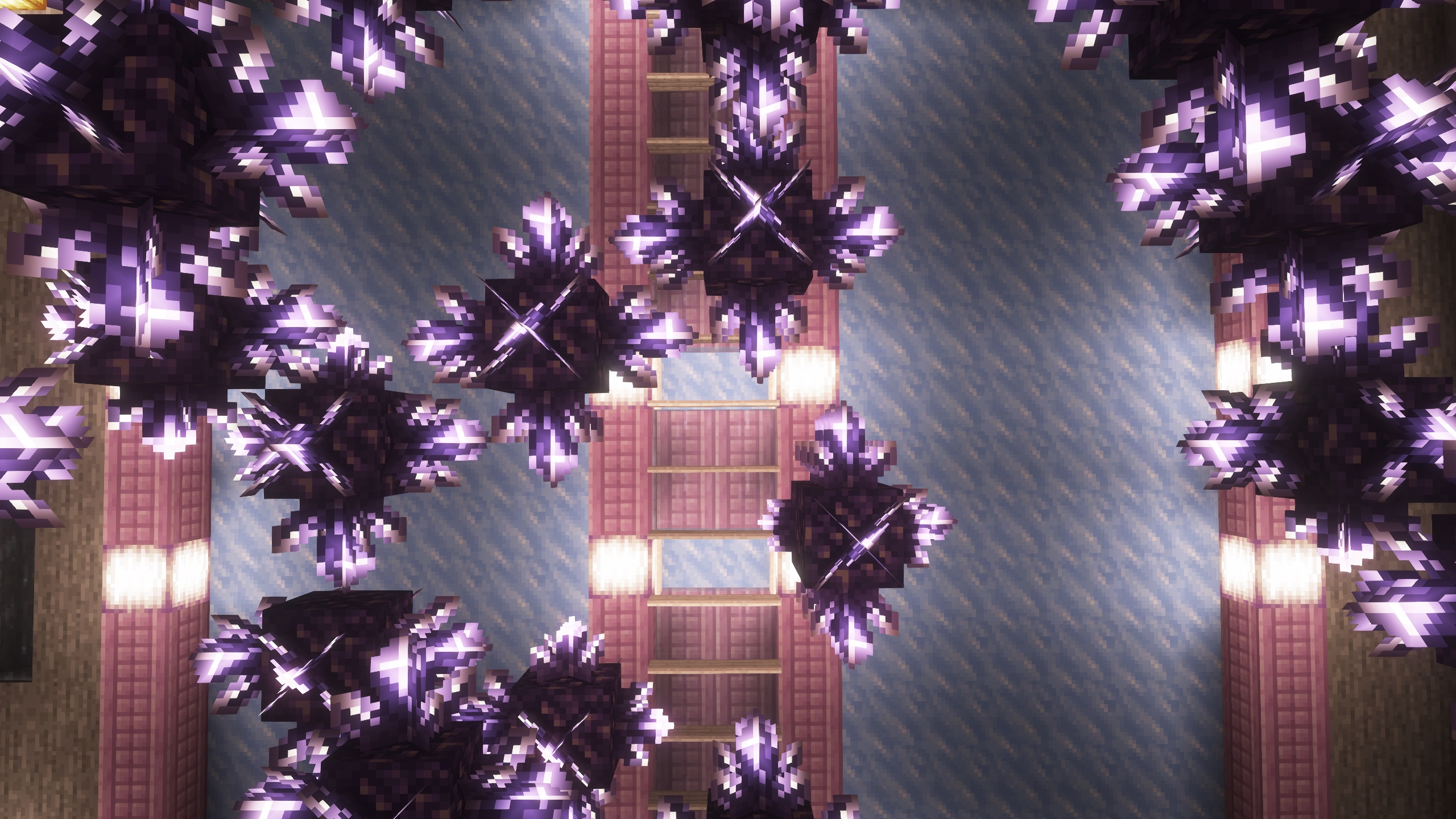 • Turning one of the central amethyst geodes into an automatic amethyst farm, using a flowing water basin to collect the amethyst crystals, and a bubble column to get them to the mushroom island surface.
