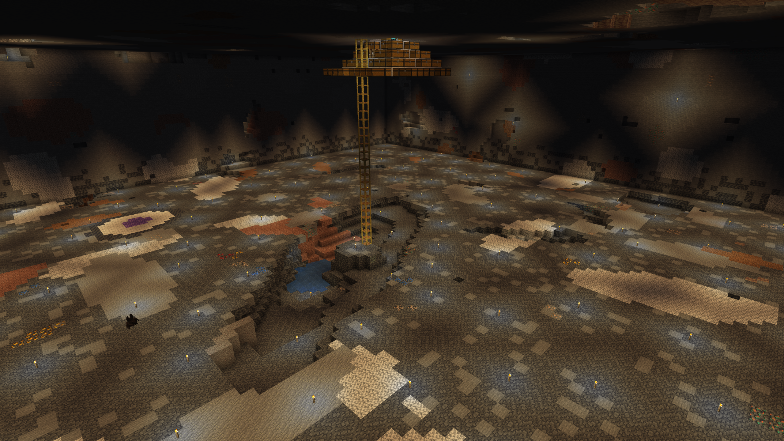 • Started the week tunnelling under the centre of the mushroom island looking for, and lighting up spawning spaces in lush caves, but also found a number of amethyst geodes, mob spawners, and a massive trial chamber!