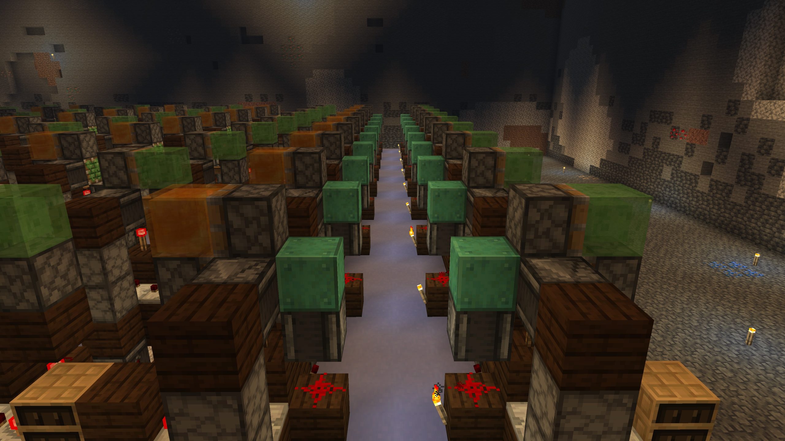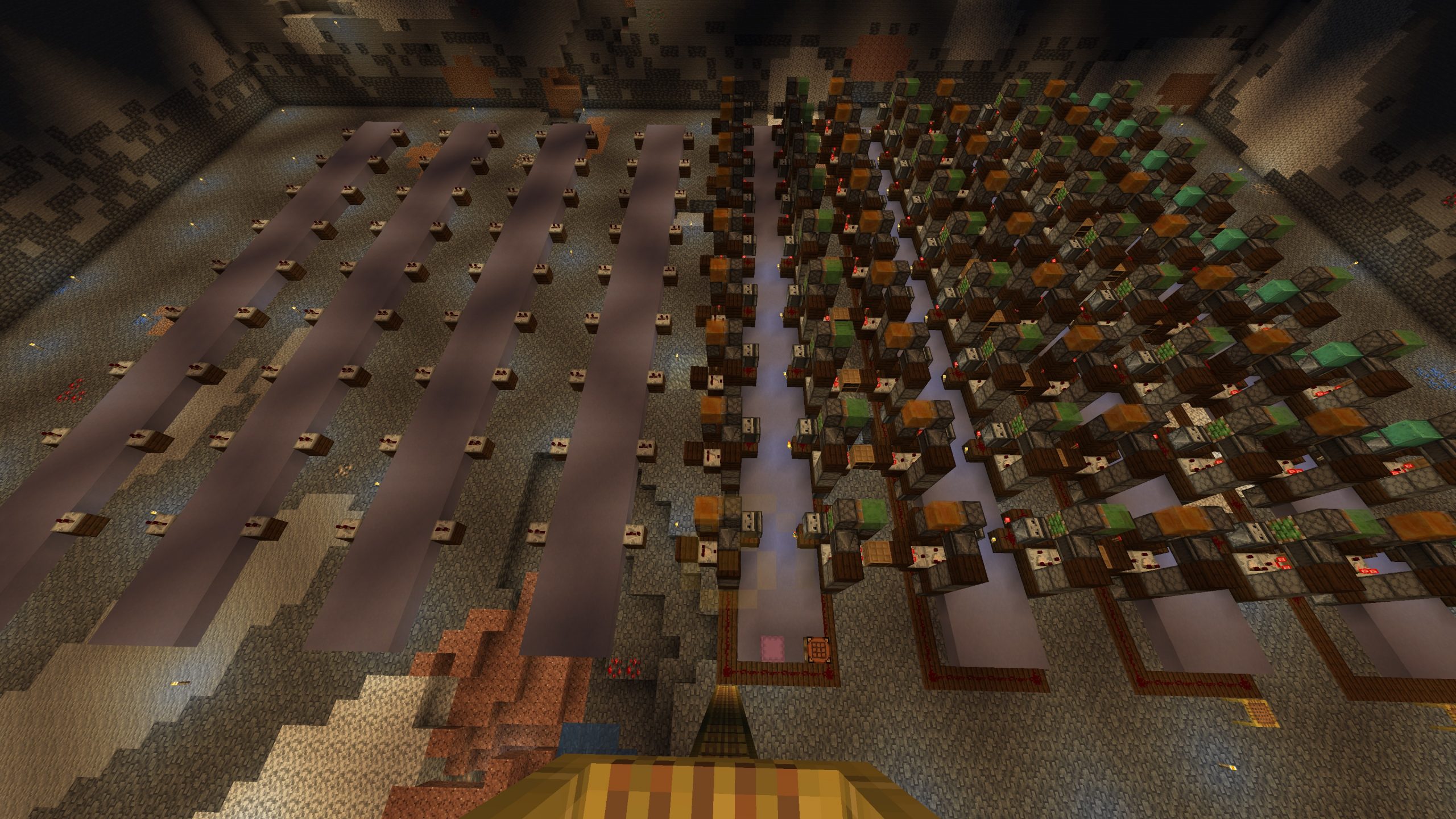 • The flying machine that feeds the copper blocks into each row needs to be constructed.