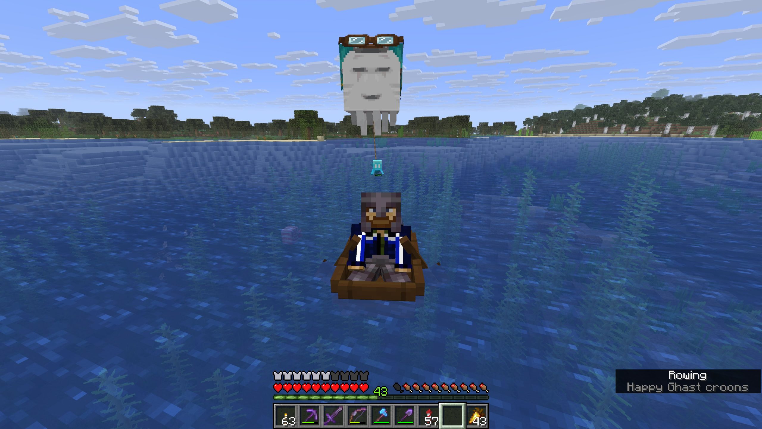 - Travelled thousands of blocks to a coral reef to spawn in a coral zombie nautilus. The plan is to air-lift the coral zombie nautlius via happy ghast, and a boat, in a caravan lead by an allay to it’s new home.
