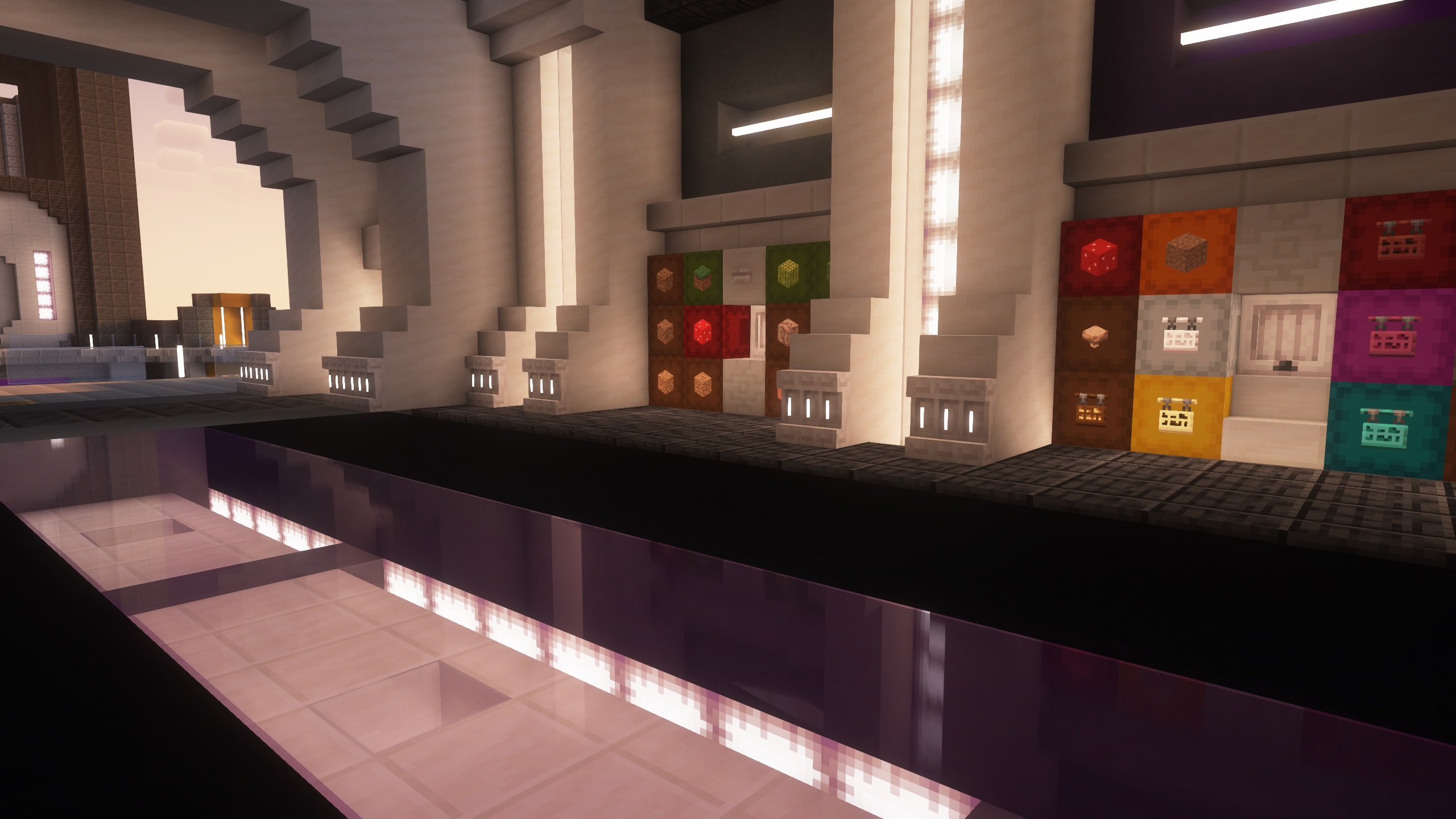- Haven’t yet decided if the visible shulker boxes on the walls will be dyed all the same colour or not.