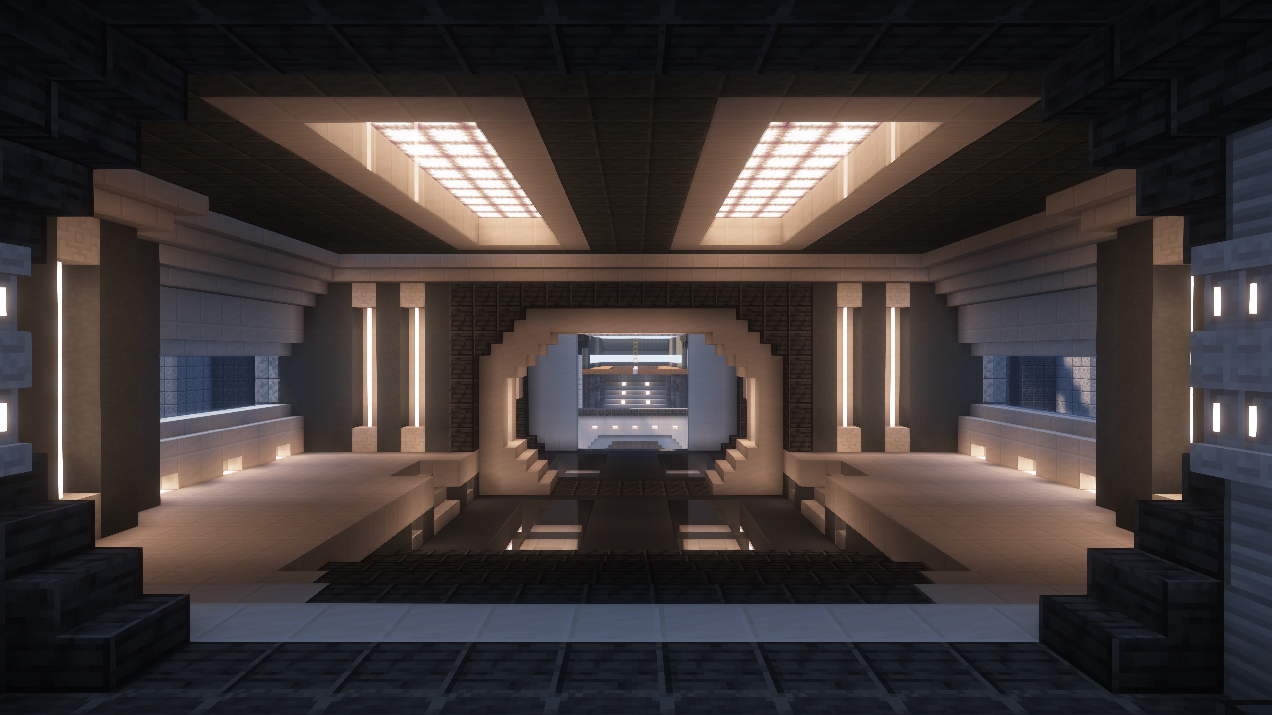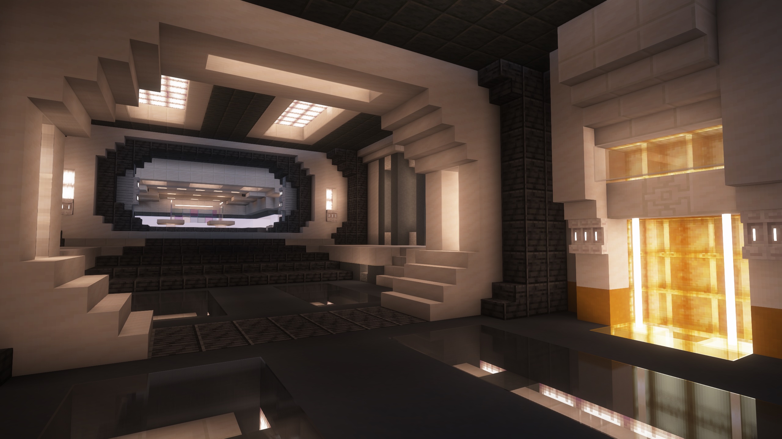 - Dug the central power core chamber down to Y level 0 finally hitting deepslate.