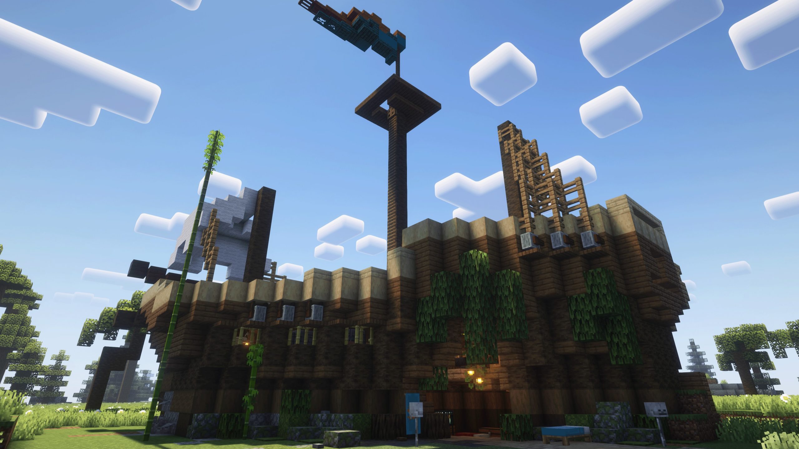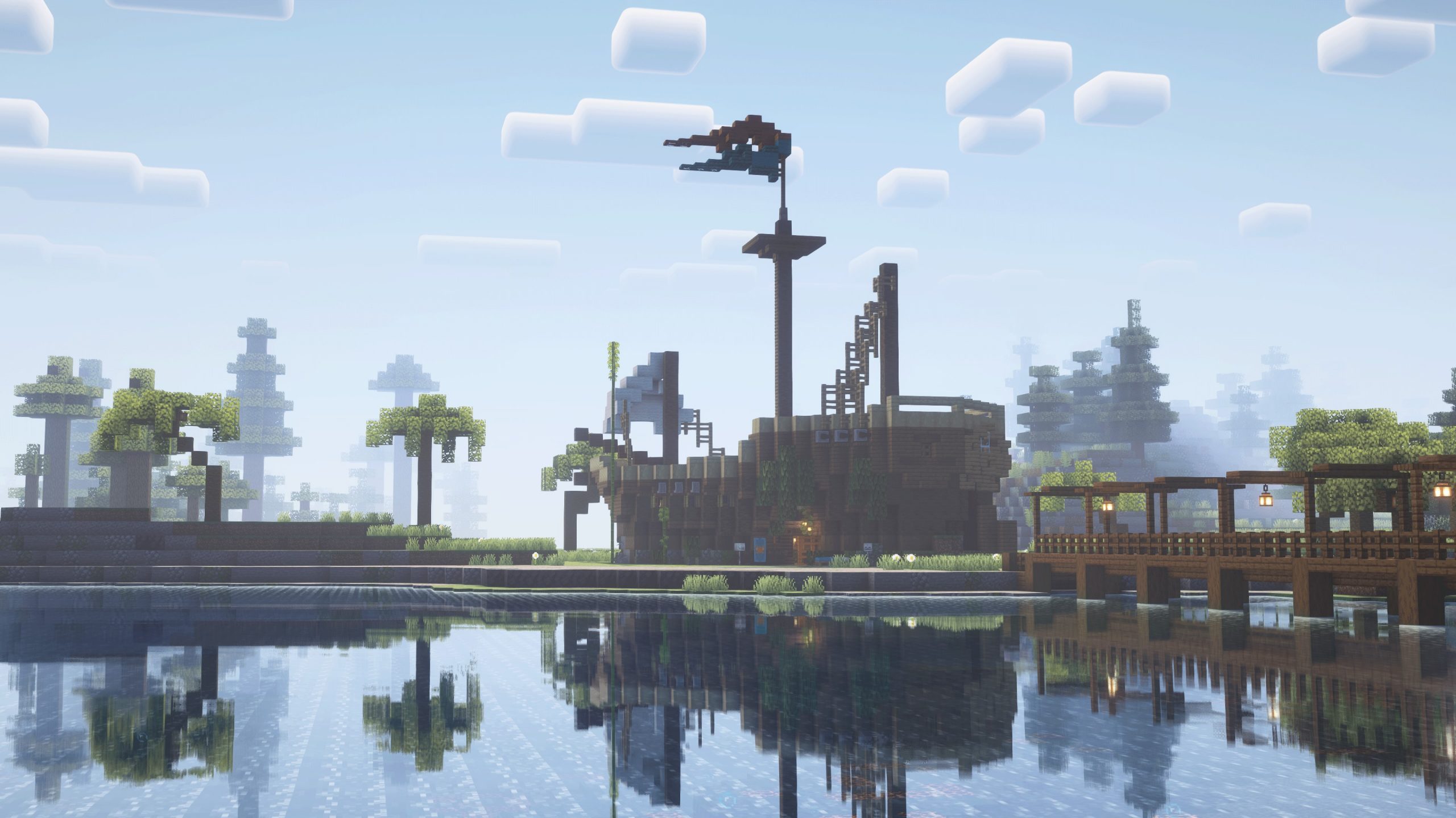 - Kept the shape of the pirate ship but swapped out some spruce planks for mangrove wood, and already the look is much improved.