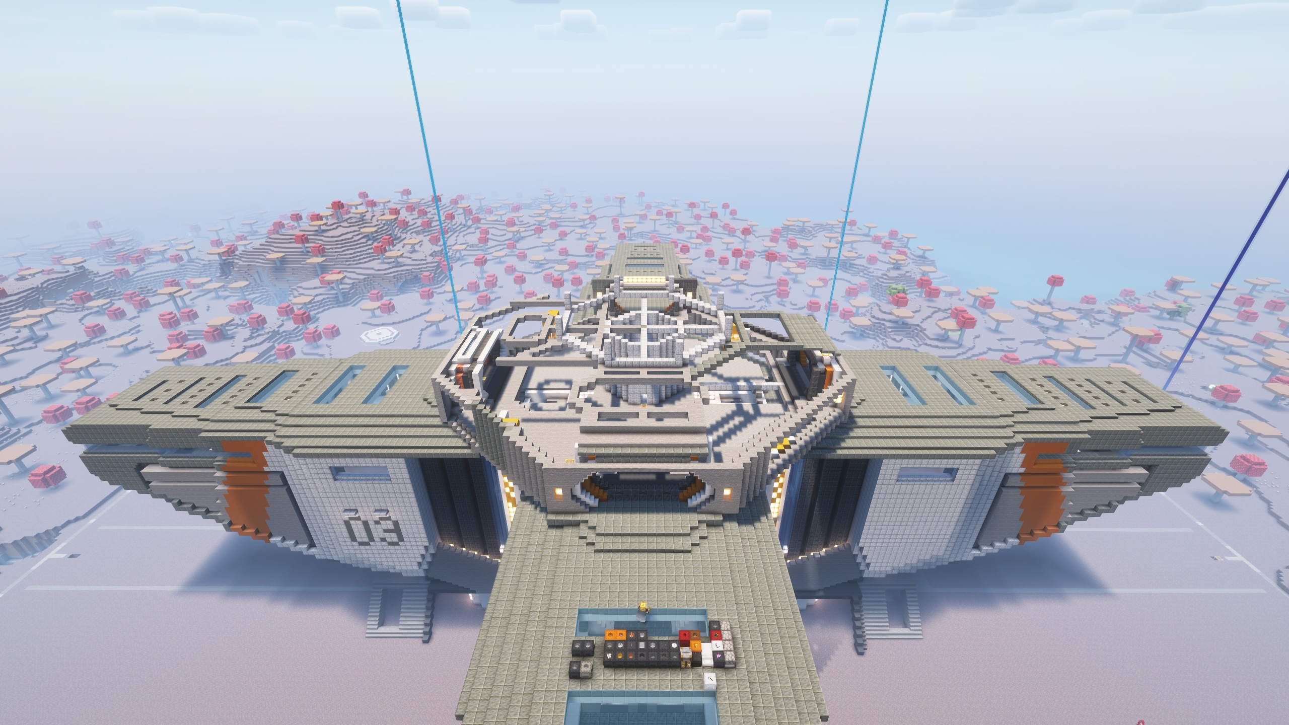 - Inside the landing bay there is a first draft of a “landing pad” design, and at the center there will be a lift to the very top control room for a yet to be designed radar, and sensor array.