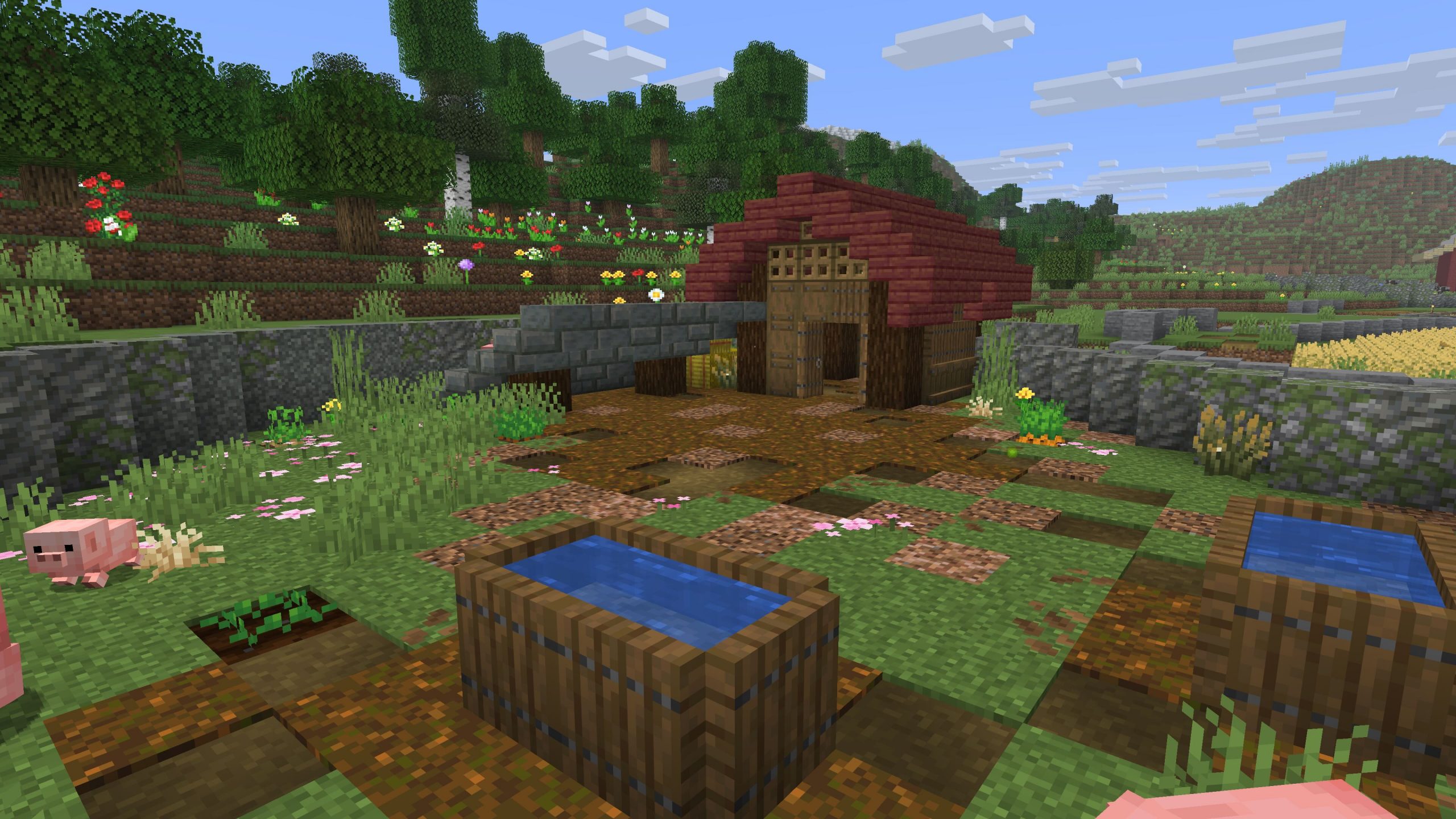 - Got some pastures and pens built for pigs, sheep, cows, and chickens.